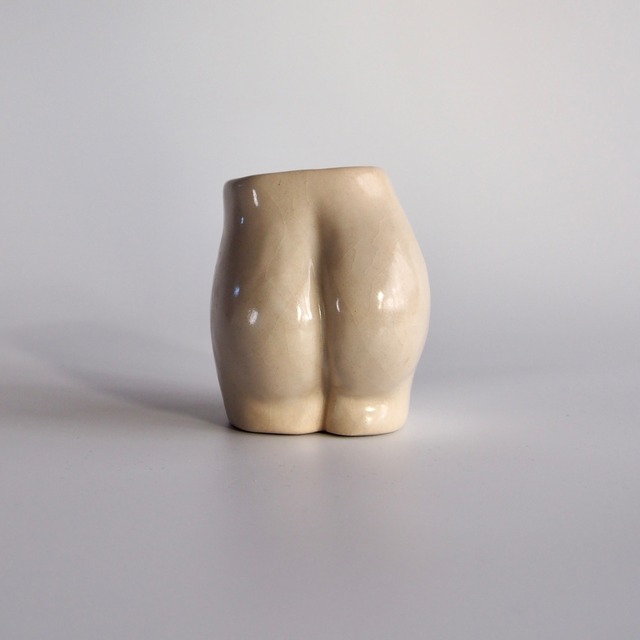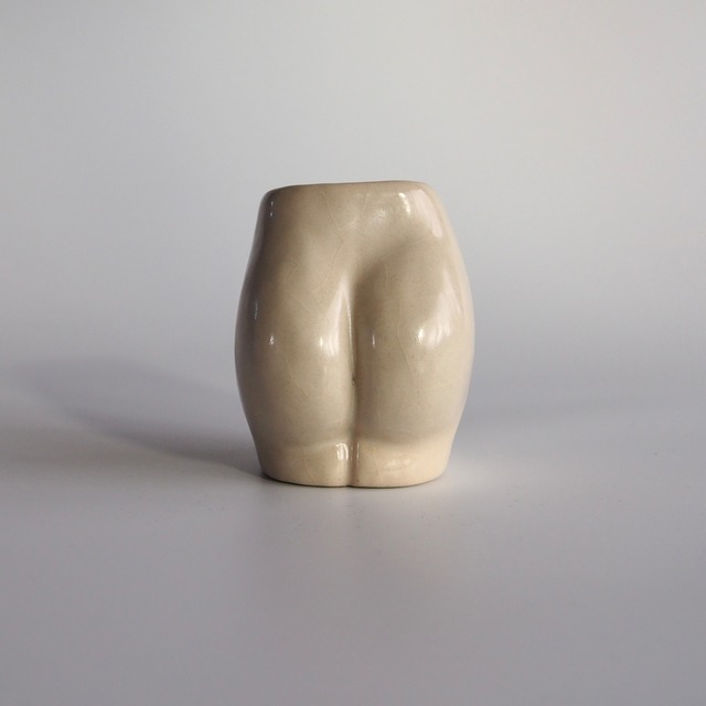 像の一部を切り取ったような お尻の花器です。 自然体で佇む女性のおしり。 くびれた腹面には おへそのくぼみ。 焼き上がると肌色となる土に、セミマットな淡白い釉薬。 質感は しっとり やわらかく なめらかで、 指先で形をなぞりたくなるおしりです。 ドライフラワーやツールスタンドにも。 ※目の荒い土を使用しております。 花器、食器としてのご使用はお控えください。 ※止水剤の影響で使いはじめにべとつくことがありますが、次第にとれてまいります。 横並びの写真 左から18、19。 サイズ(お尻を正面に採寸) 18 幅6,5cm × 奥行き7,5cm × 高さ8,5cm 重さ 252g 19 幅7cm × 奥行き7,5cm × 高さ8,5cm 重さ 260g 素材 陶 ___________________ 『BODY』シリーズは この世界との媒介である「身体」が題材のシリーズ 1点ずつ土のかたまりから制作することで ひとつとして同じでない私たちの かたち を表現しています ___________________ ご購入前に、下記をご一読いただきますようお願い申し上げます。 ▼ご注文時の注意事項/SHOPPING GUIDE▼ https://mosto2cera.theshop.jp/p/00001