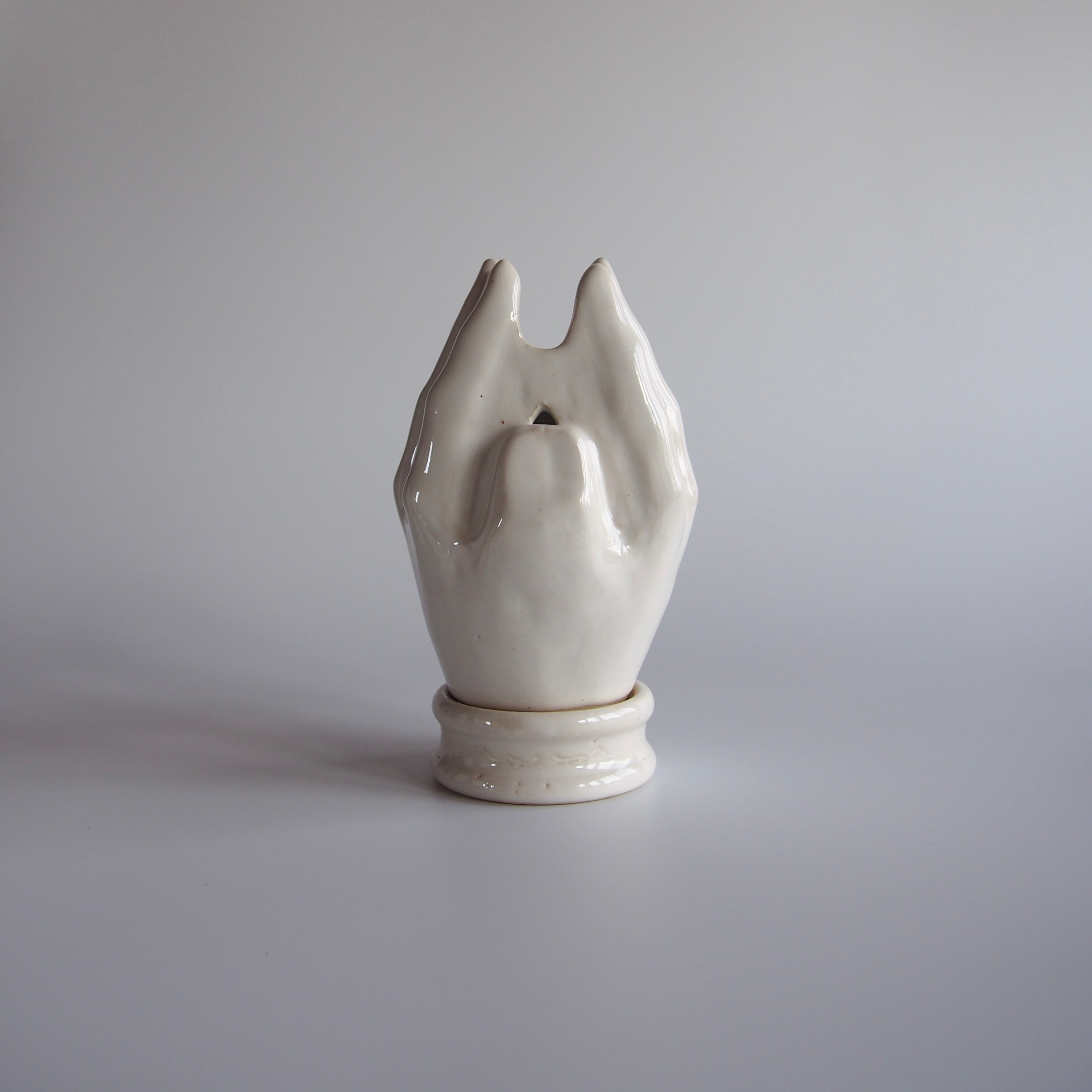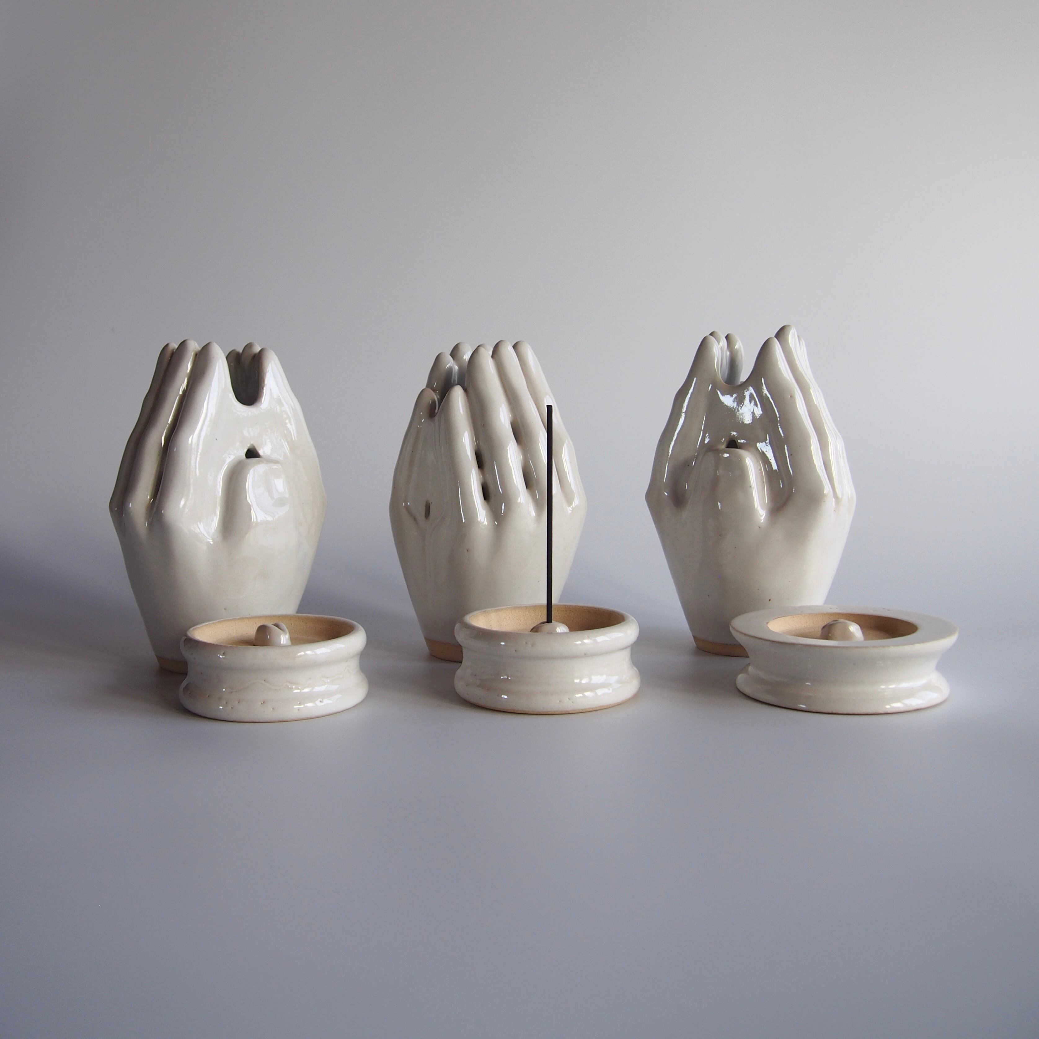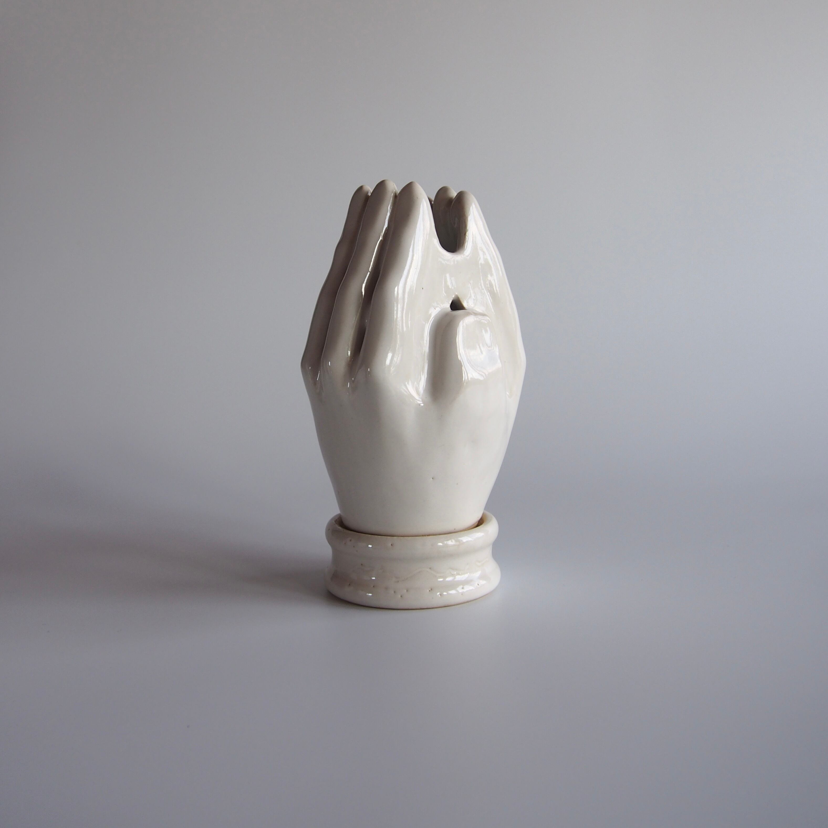 合わせた手指の隙間から、煙の立ち上がる香炉です。