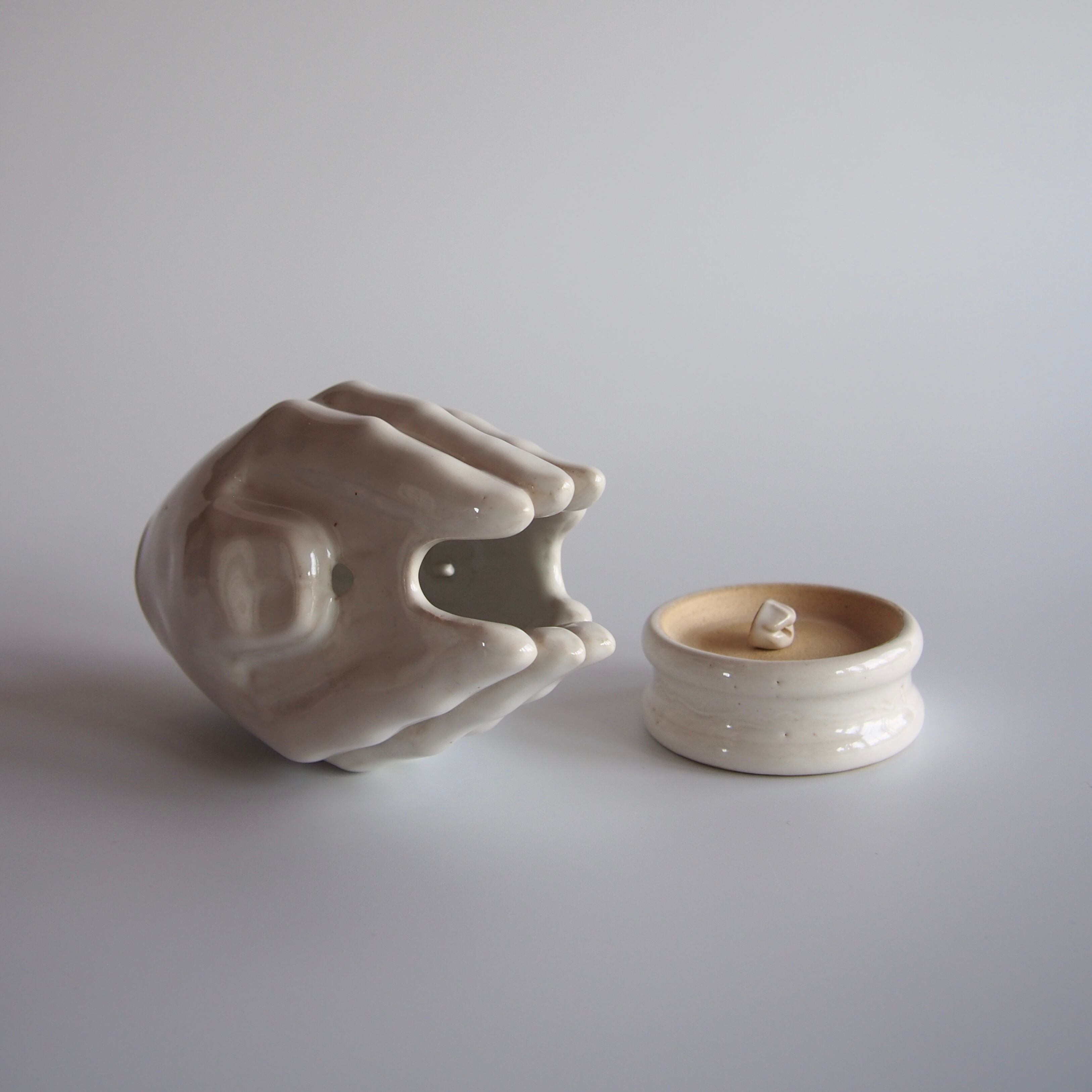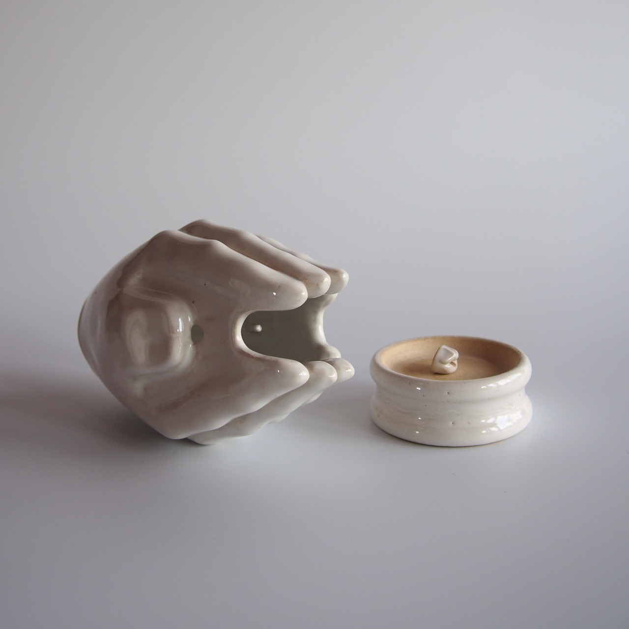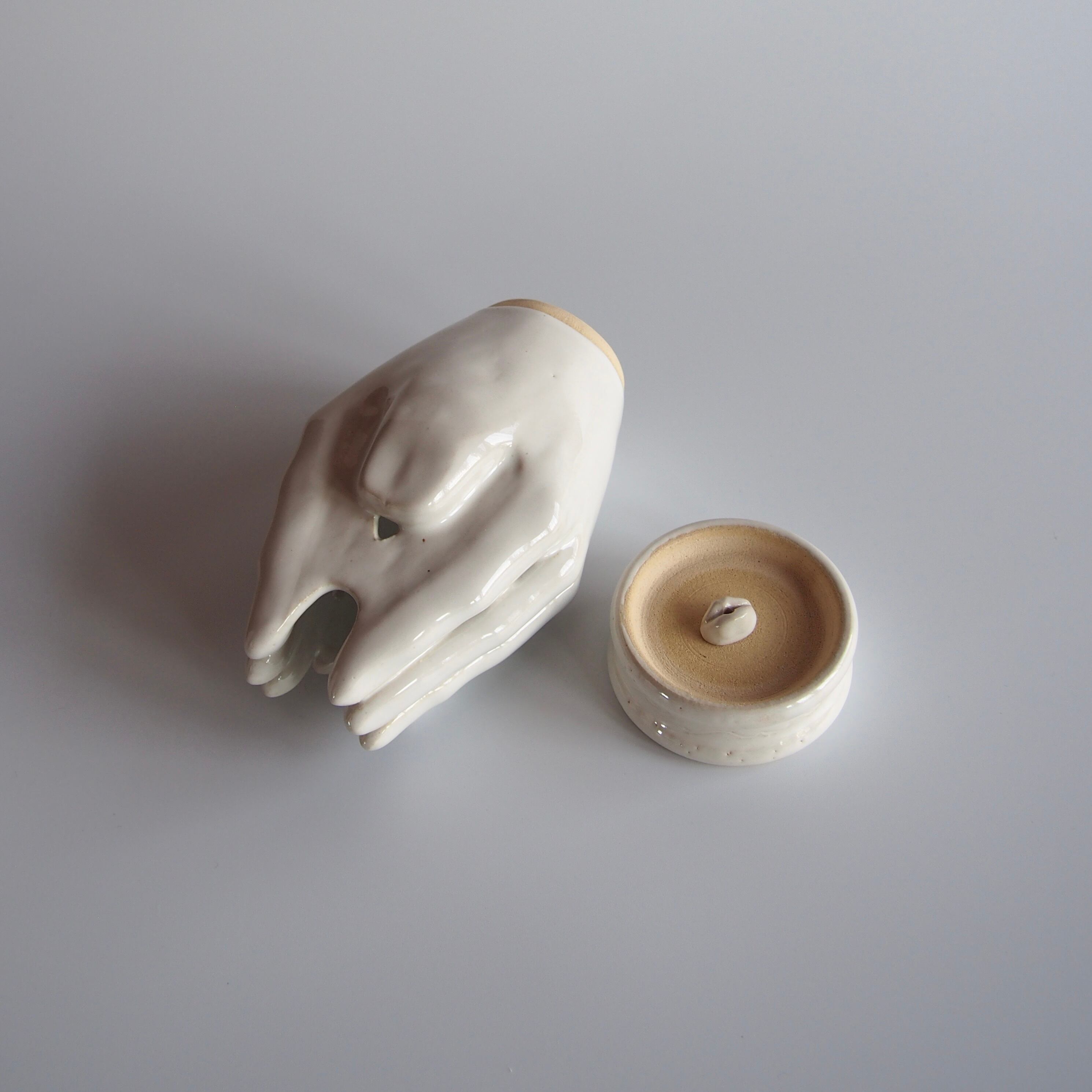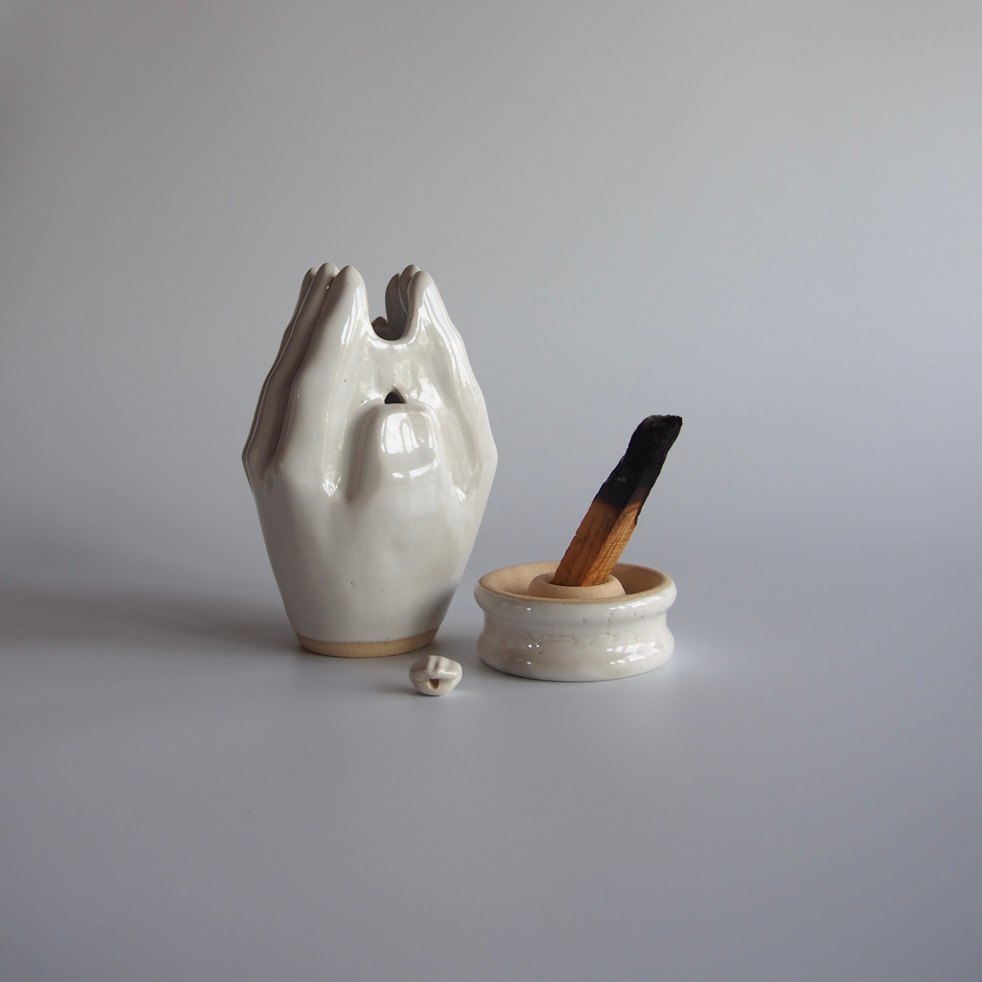 合わせた手指の隙間から、煙の立ち上がる香炉です。