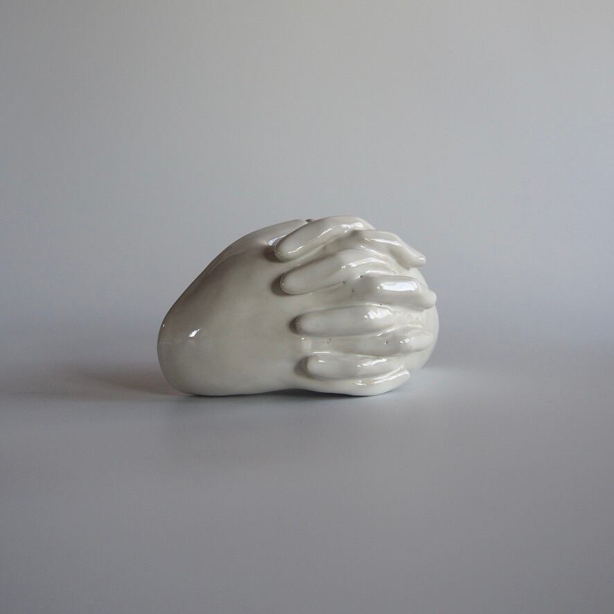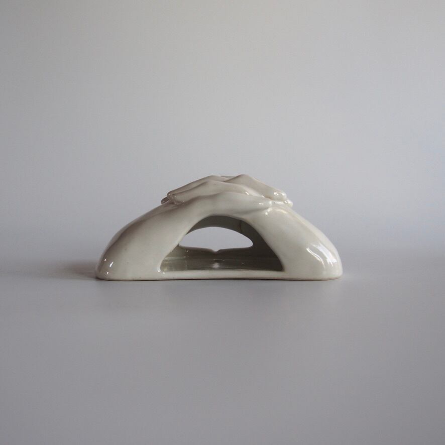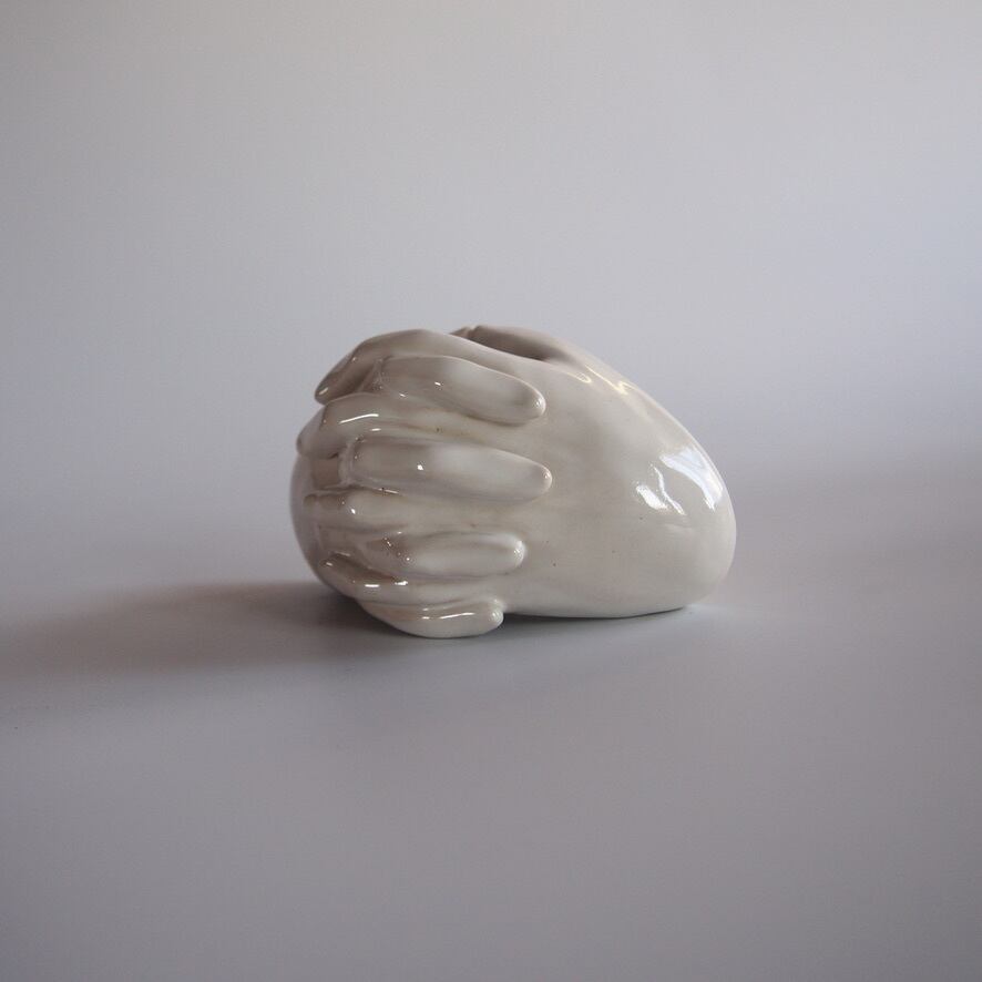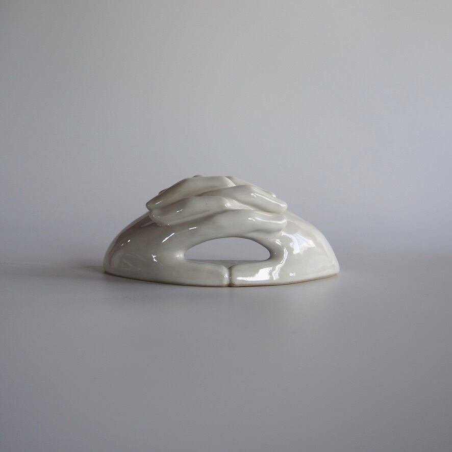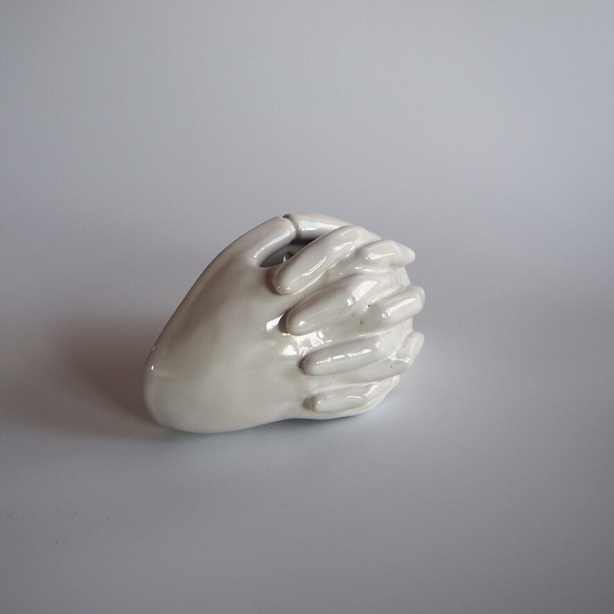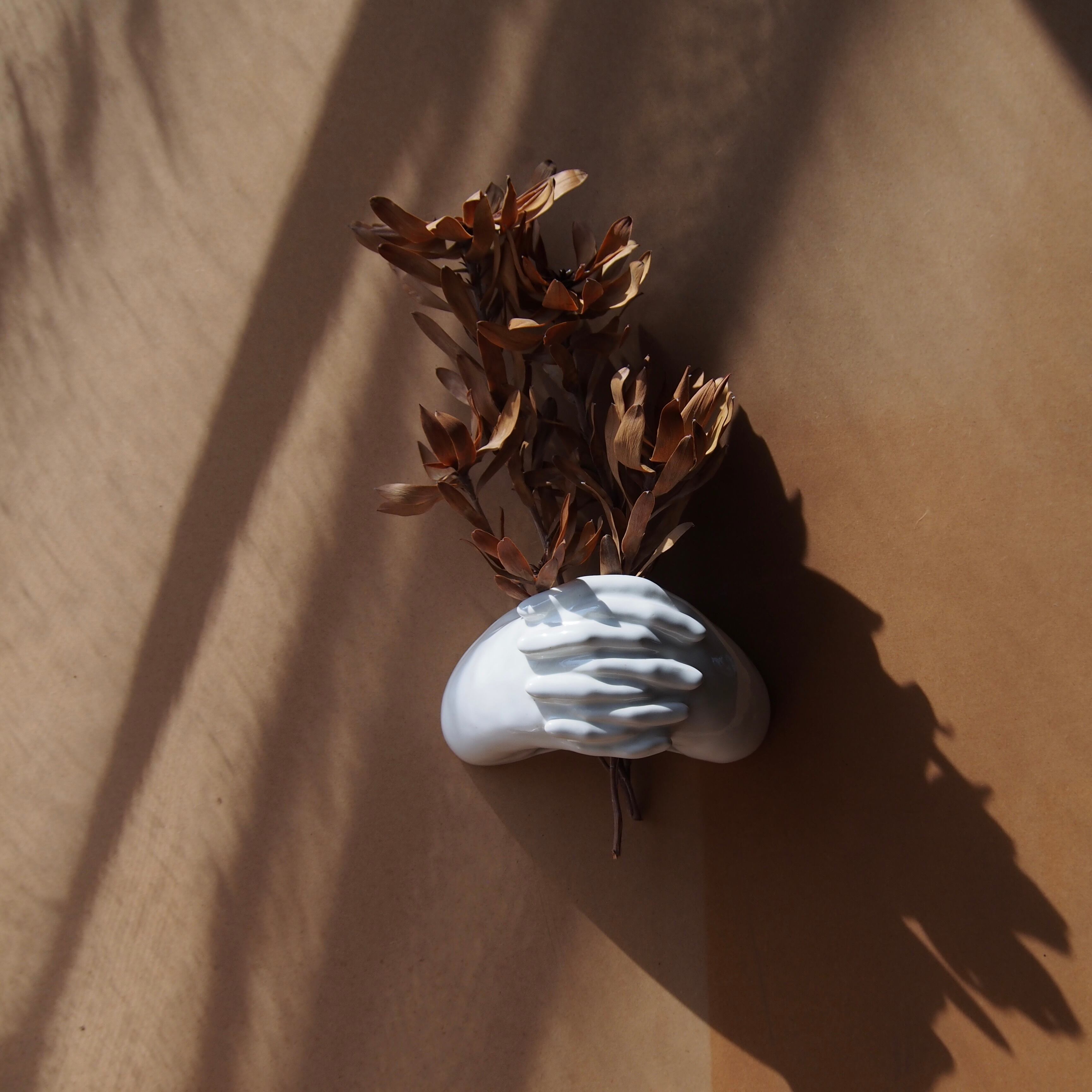 像の一部を切り取ったような、両手の形の壁掛けです。