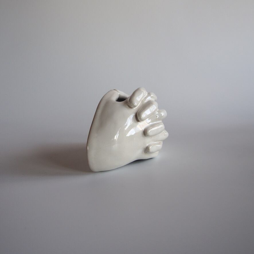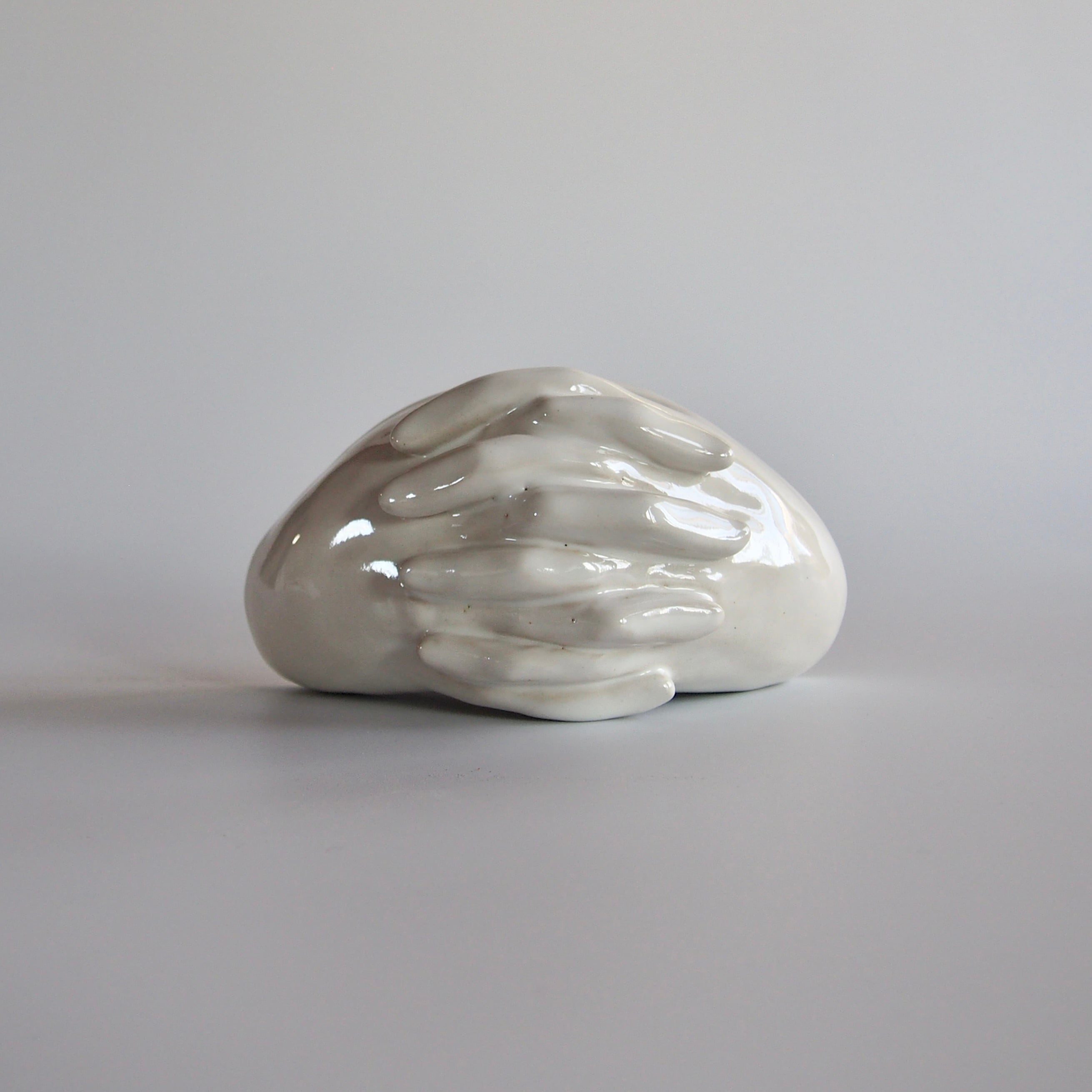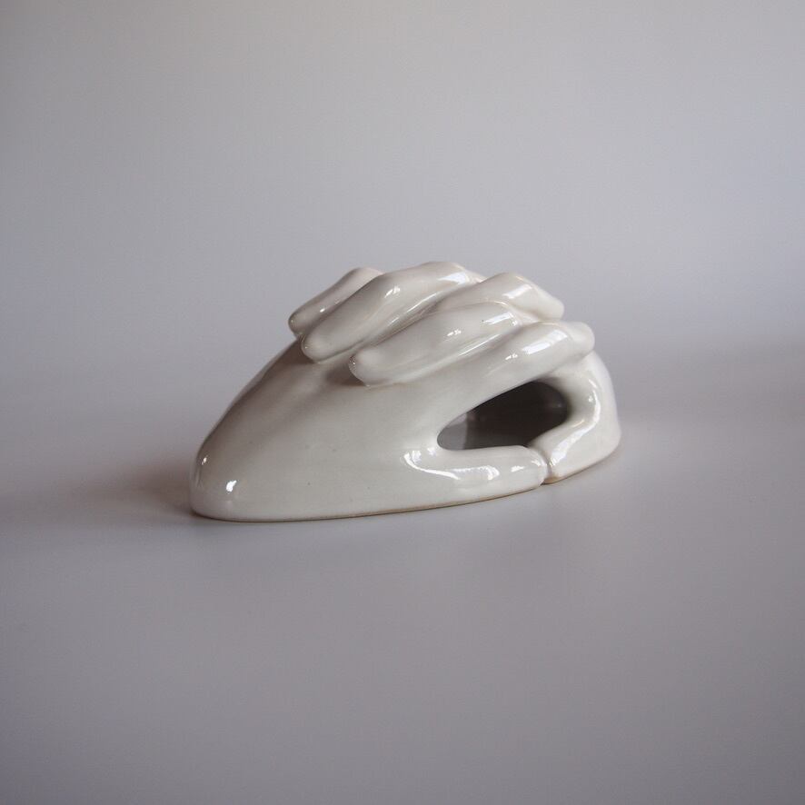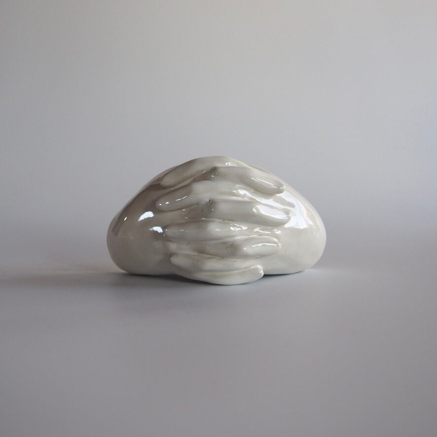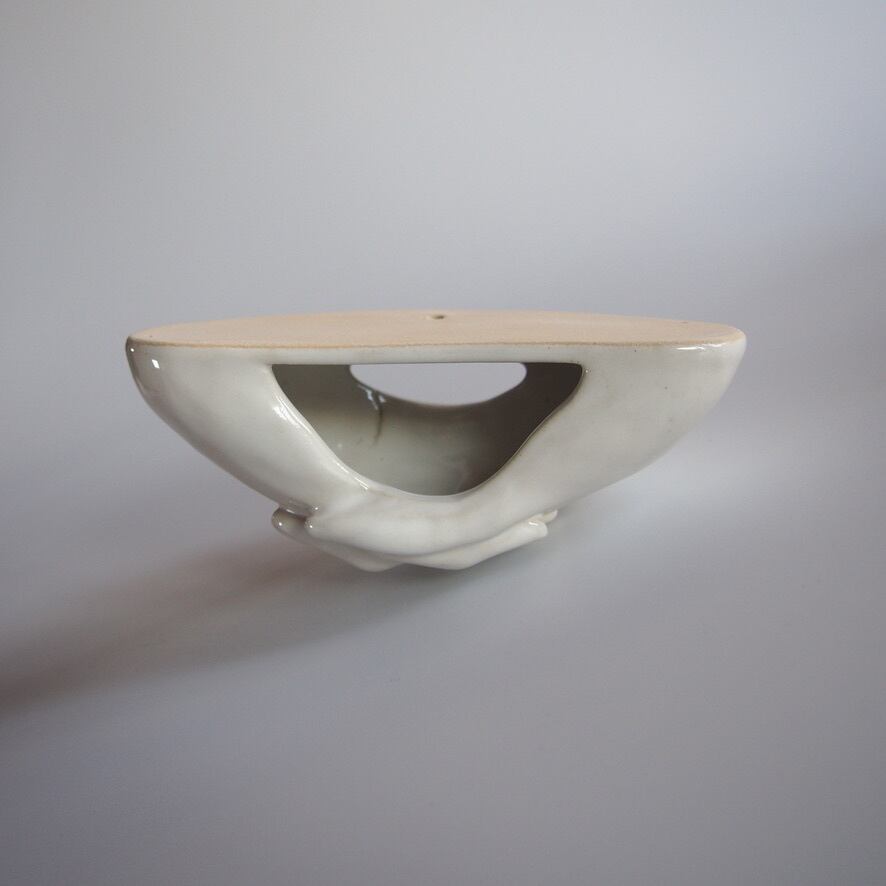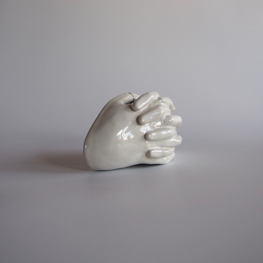像の一部を切り取ったような、両手の形の壁掛けです。