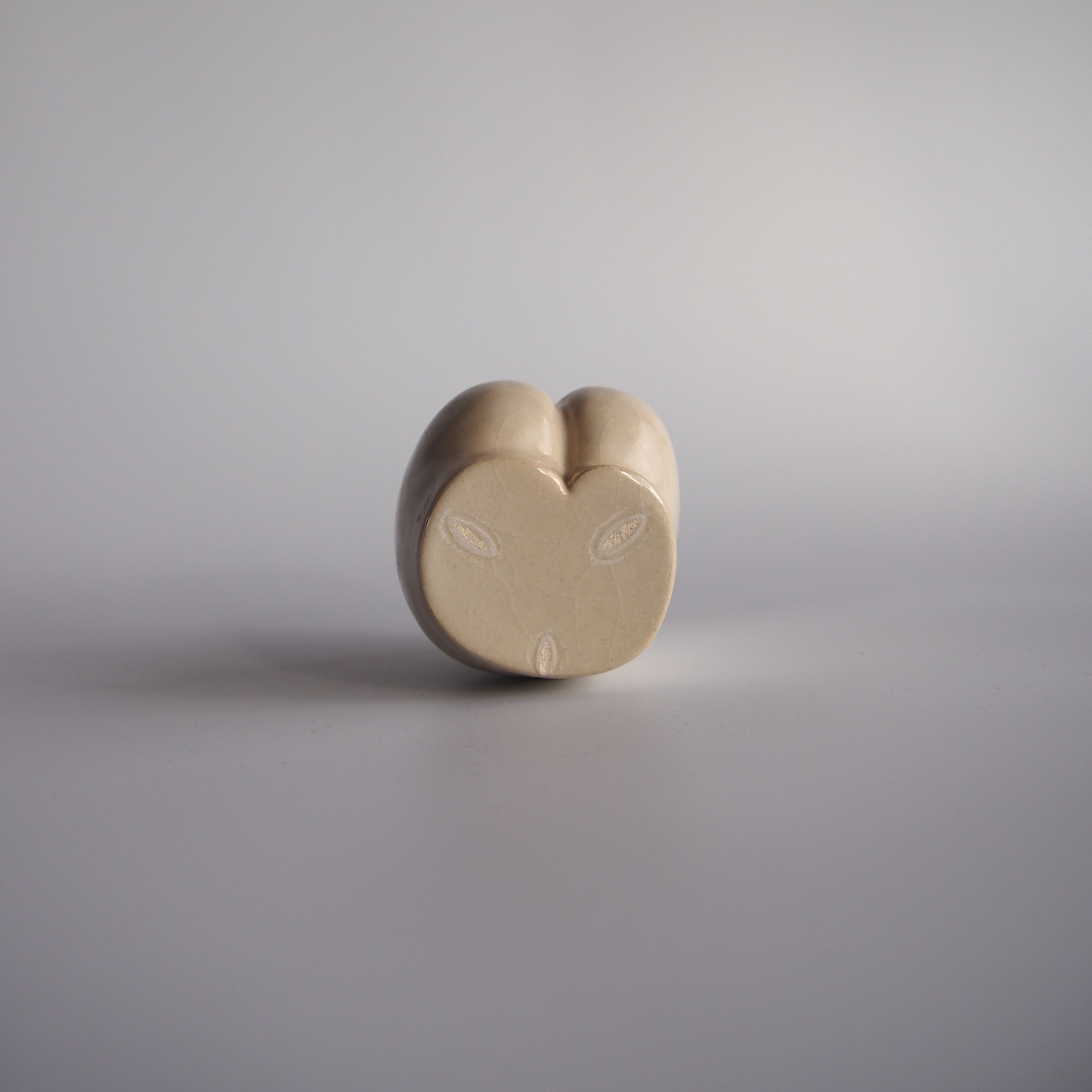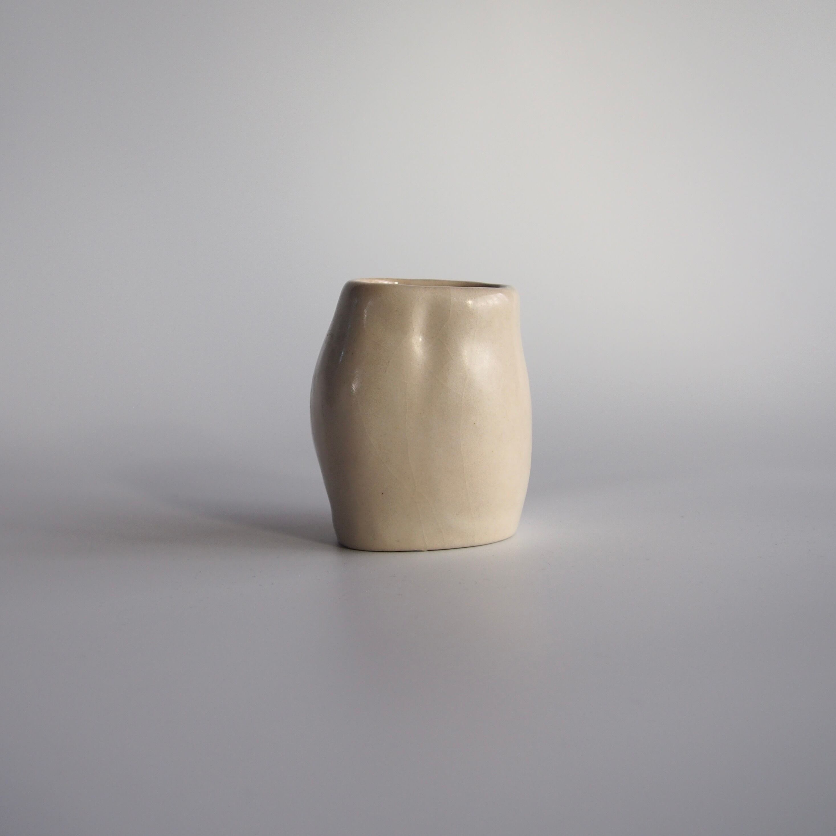 焼き上がると肌色となる土に、セミマットな淡白い釉薬。