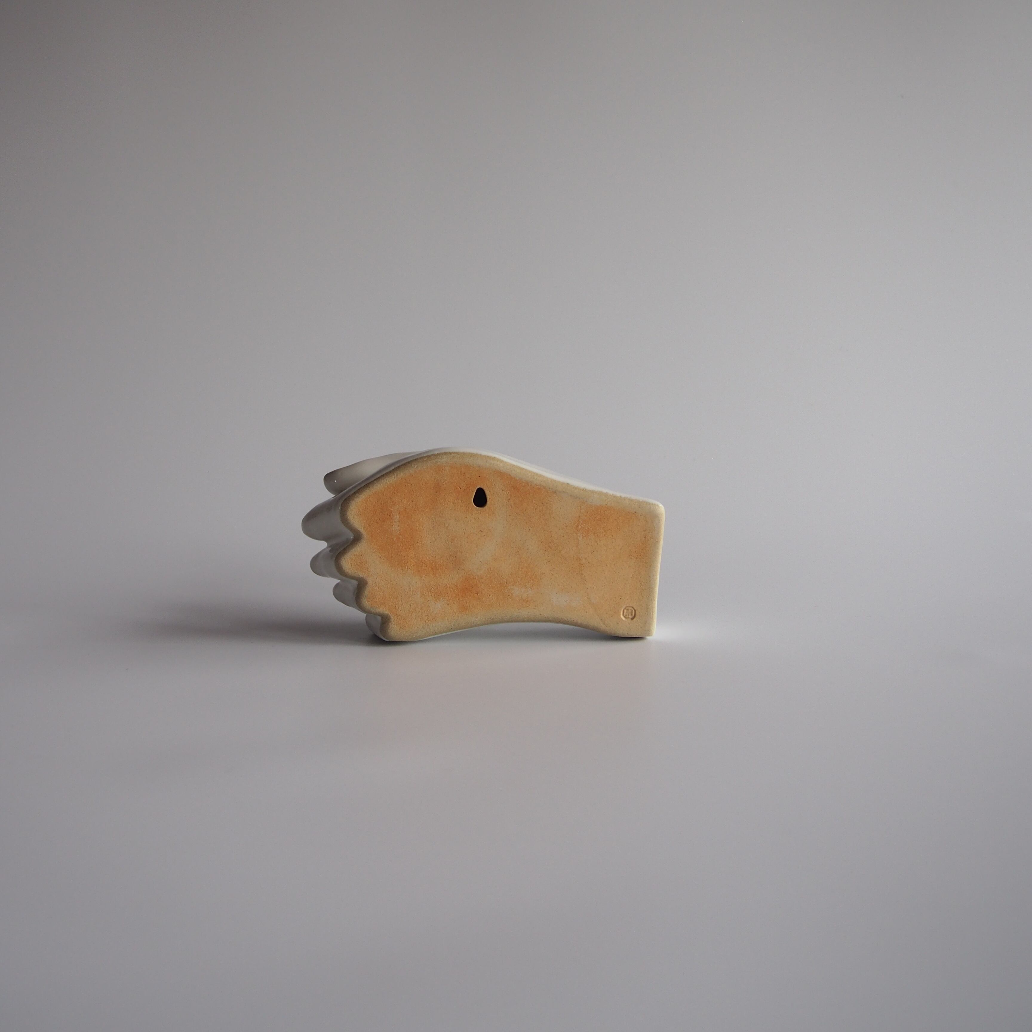 像を一部を切り取ったような、つかむ手の形の壁掛けです。