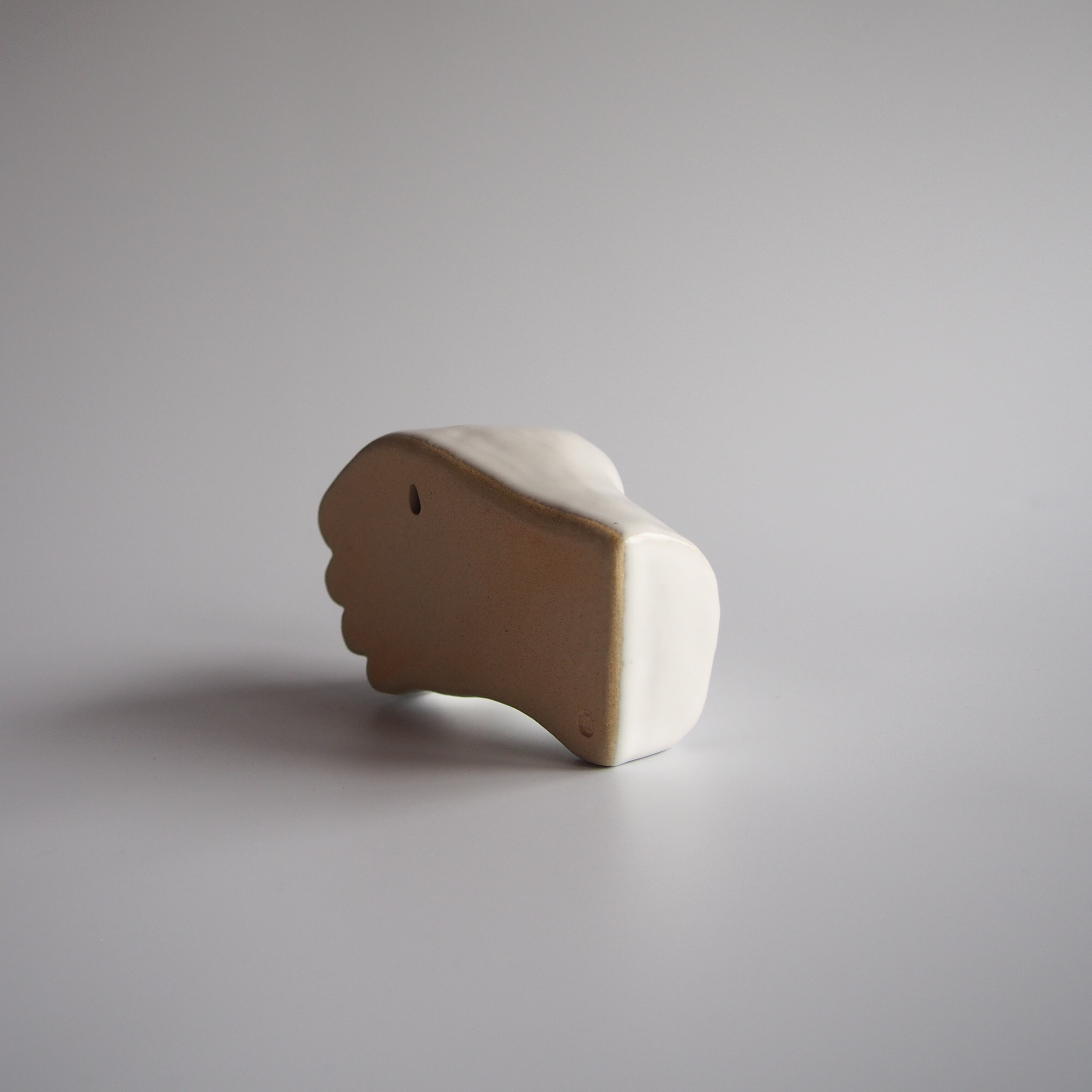 像を一部を切り取ったような、つかむ手の形の壁掛けです。